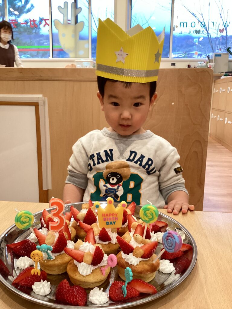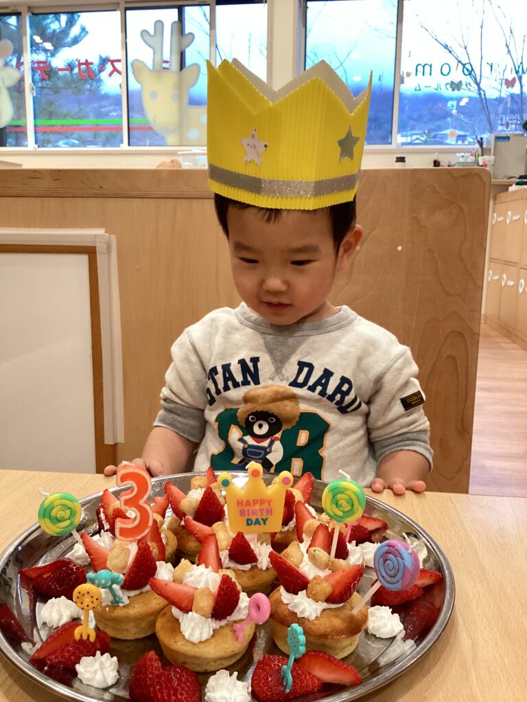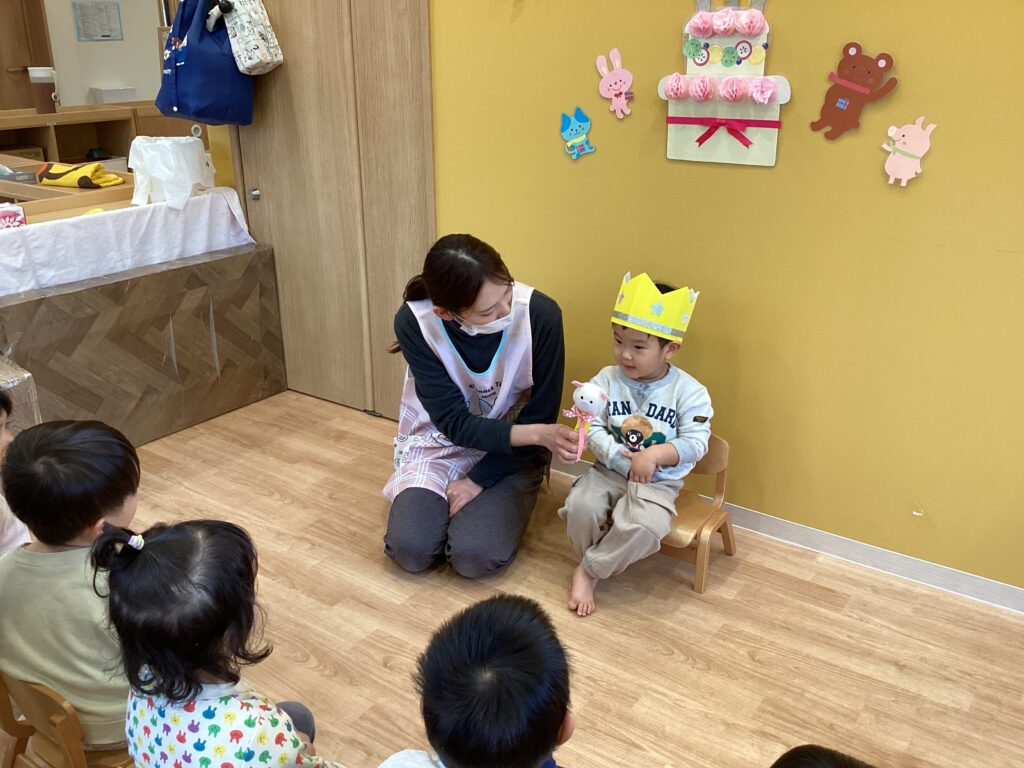 お誕生児さんは、みんなの前に出ると少し照れながらも、