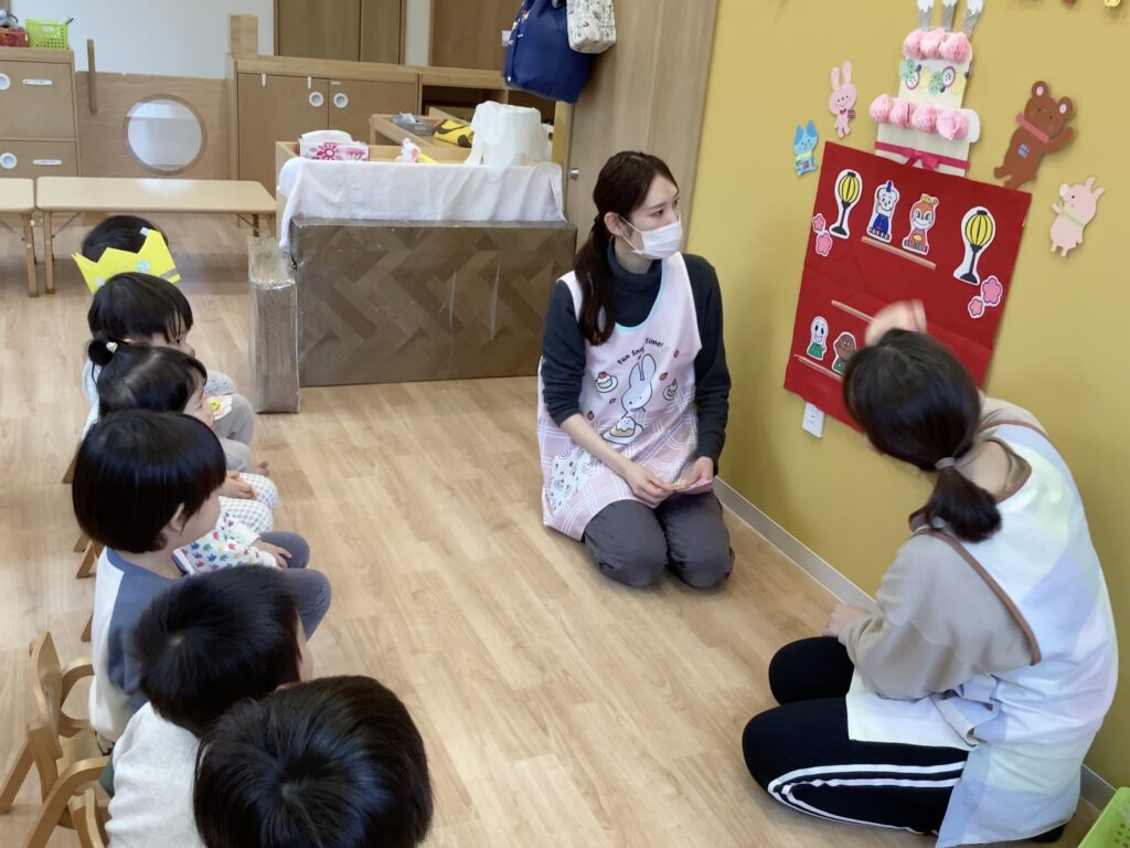 また、みんなで一緒に「うれしいひなまつり」を歌いながら、パネルシアターを楽しみ、